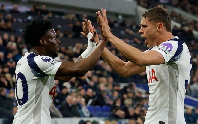 热刺排出4231阵型。穆阿尼顶在最前面。布伦南-约翰逊、哈维-西蒙斯和库杜斯的进攻组合联袂出击。本坦库尔和帕利尼亚搭档双后腰。斯彭斯、范德芬、凯文-丹索和波罗4后卫首发出战。维卡里奥担任首发门将。特尔、里沙立松和奥多贝尔坐在替补席待命。索兰克、库卢塞夫斯基和麦迪逊因伤缺阵。